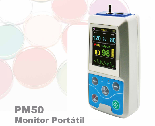El PM50 es un monitor de paciente multifuncional que puede monitorizar la PA y la SpO2 al mismo tiempo. Al realizar una monitorización de larga duración de la presión arterial dinámica, el dispositivo es ampliamente aplicable a las salas de los hospitales, las clínicas comunitarias y otras instituciones médicas
